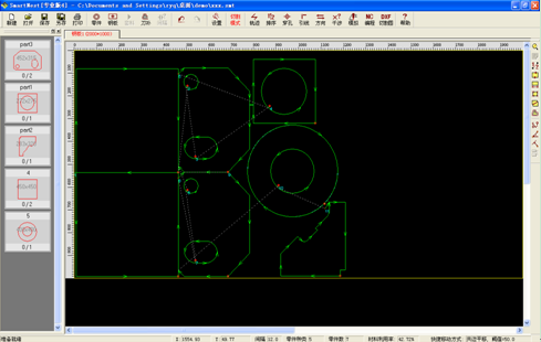 5、先進(jìn)的全自動(dòng)套料功能。采用新的計(jì)算智能技術(shù)和相關(guān)科研成果,對(duì)任意復(fù)雜形狀的異形零件進(jìn)行全自動(dòng)真實(shí)形狀套料,計(jì)算過(guò)程瞬間完成,優(yōu)化效果堪稱完美,材料利用率平均提高5%。